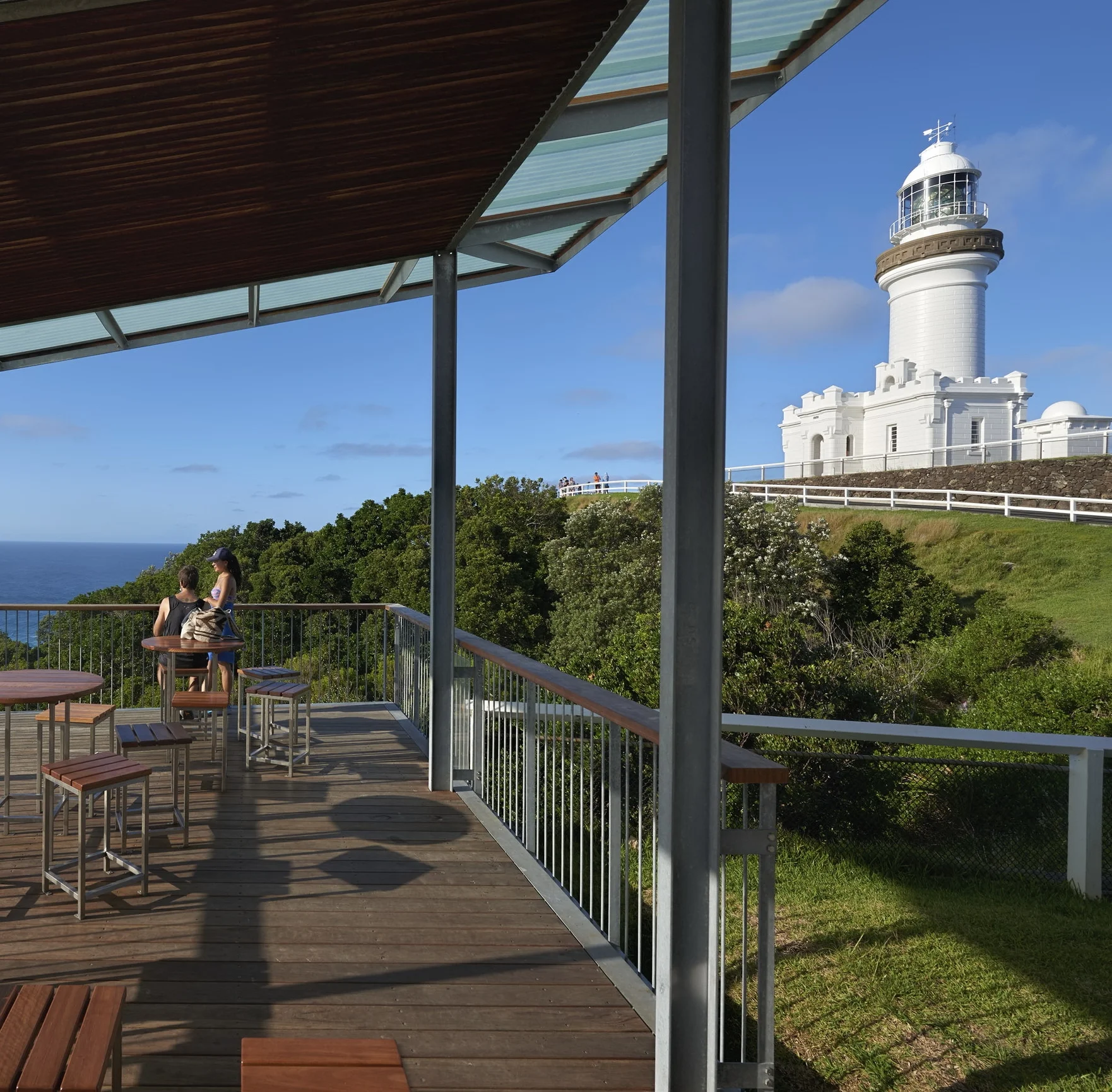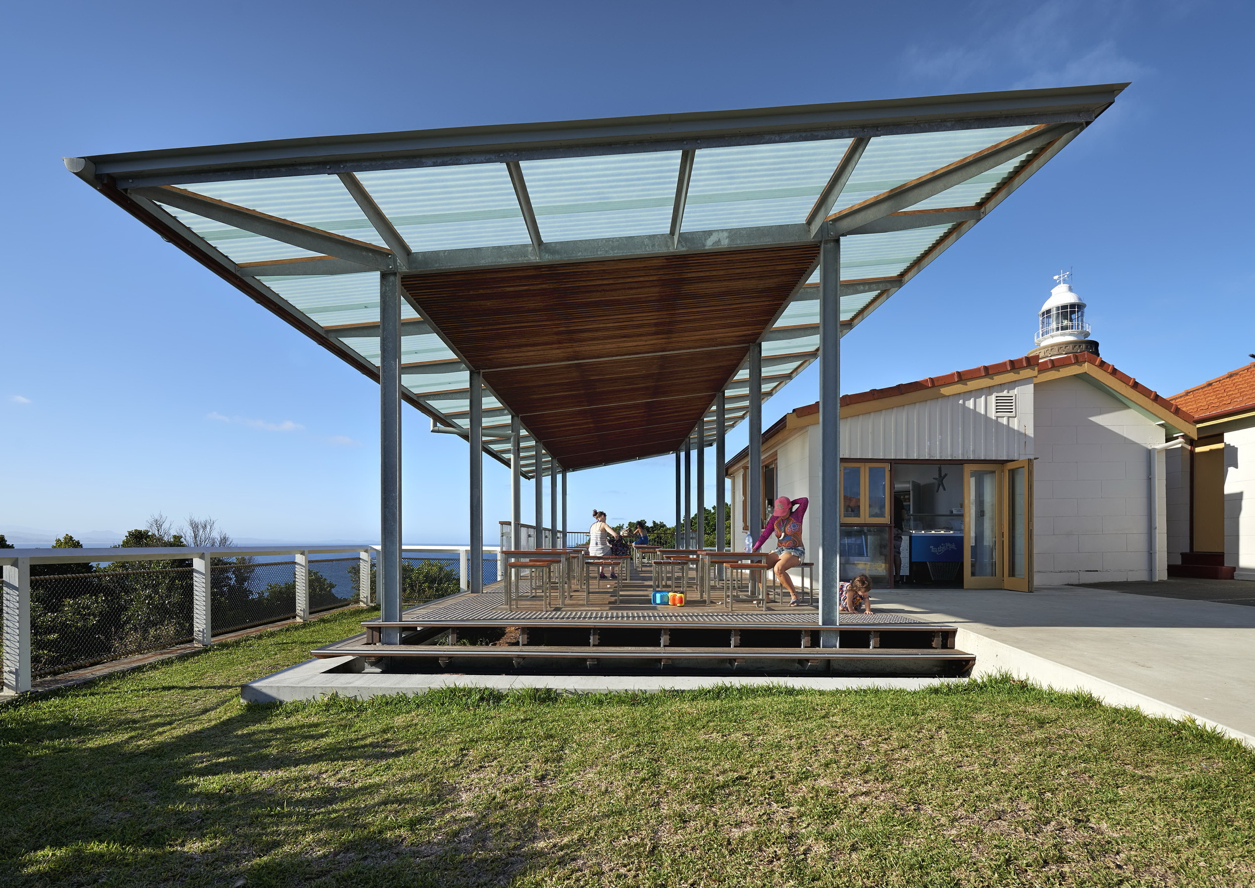 In this project, the existing Cafe housed in an historical light keeper’s outbuilding has been retrofitted to open out onto the new sheltered deck platform.